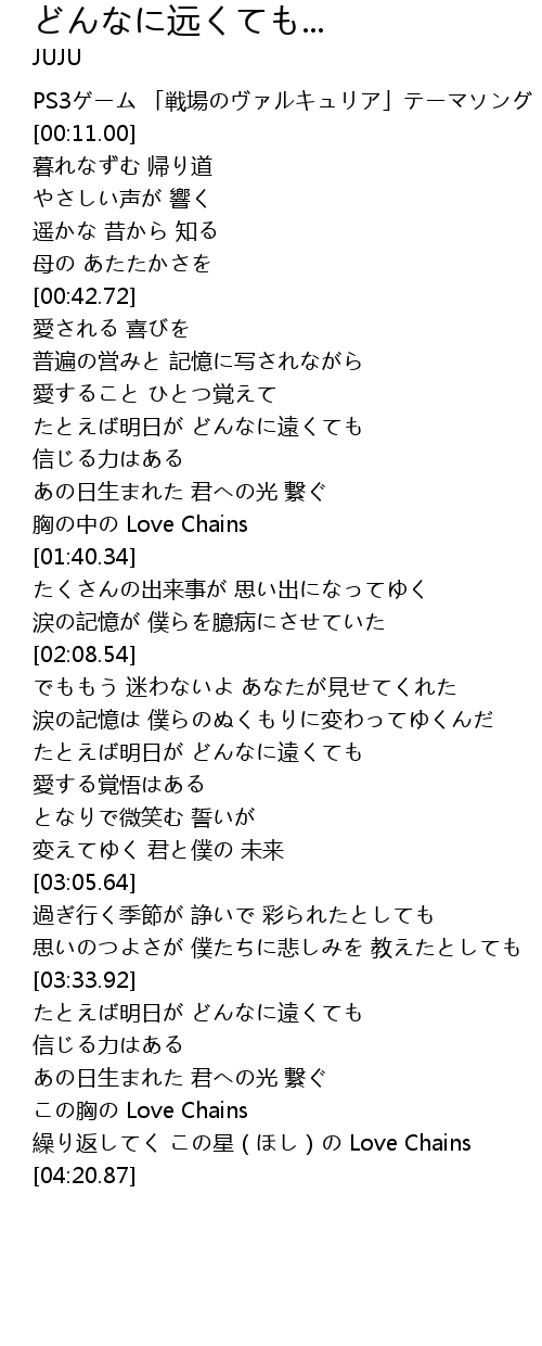 | [04:00.60] | この胸の Love Chains |