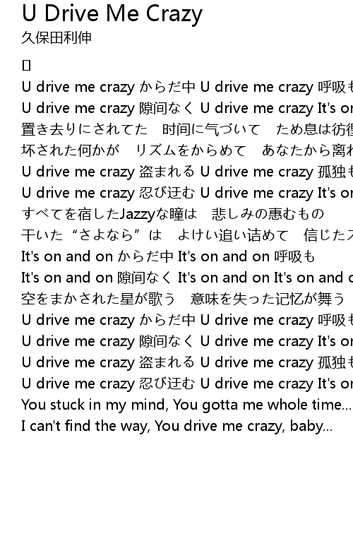 | U drive me crazy 忍び迂む U drive me crazy It's on and on | |
