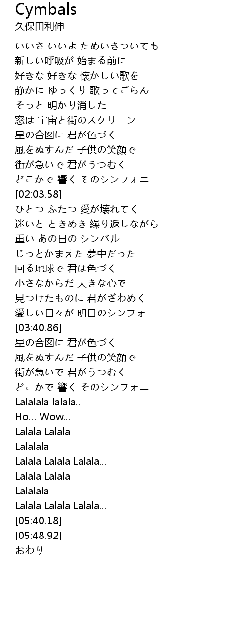 | [05:19.34] | Lalala Lalala |