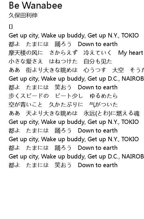 | Get up city, Wake up buddy, Get up N. Y., TOKIO | |