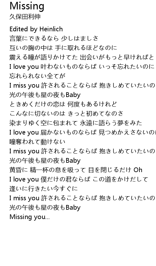 | [03:55.77] | Missing you... |