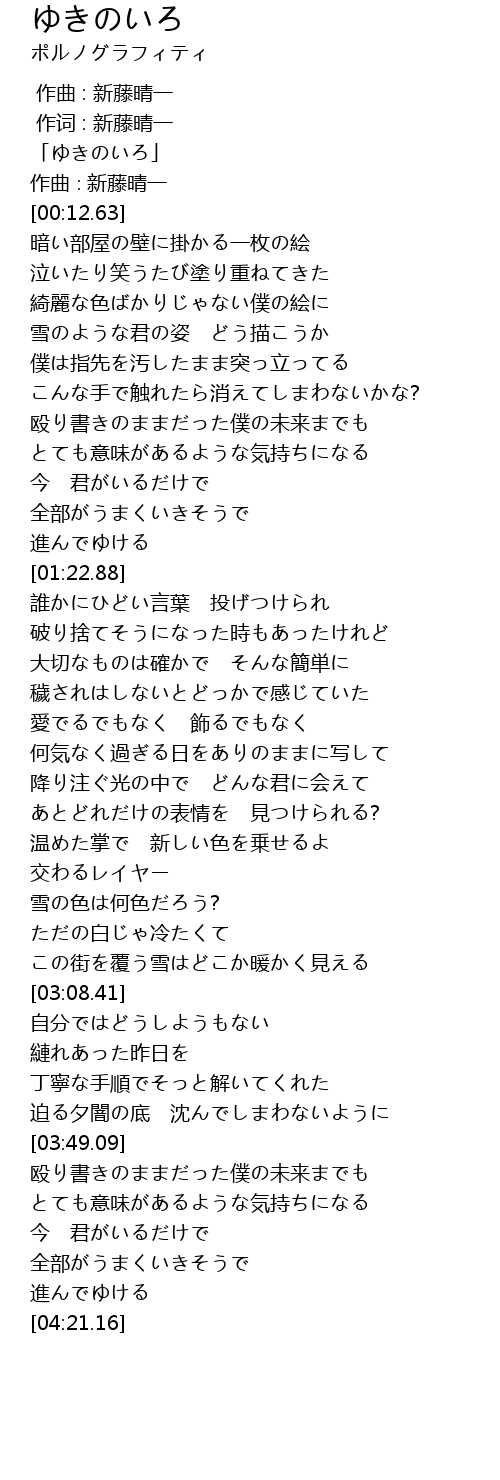 | [02:41.29] | 雪の色は何色だろう? |