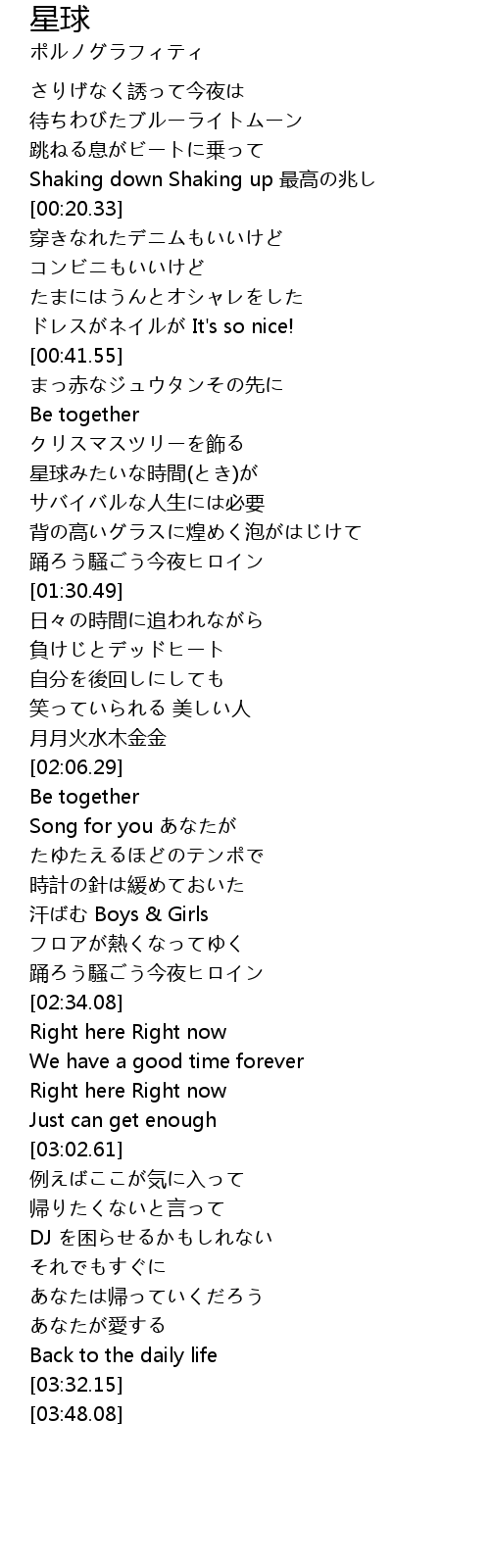 | [02:22.16] | 汗ばむ Boys & Girls |