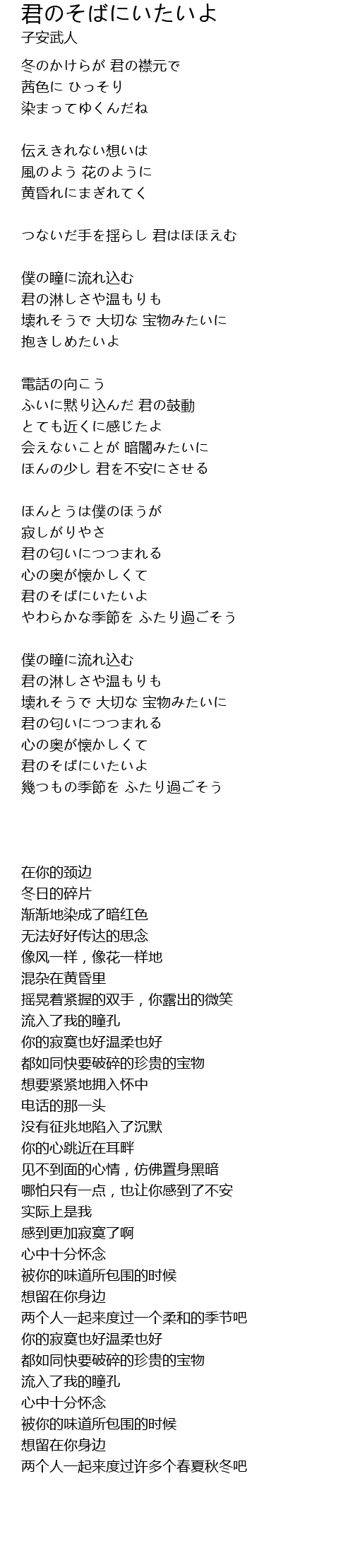 君のそばにいたいよ |