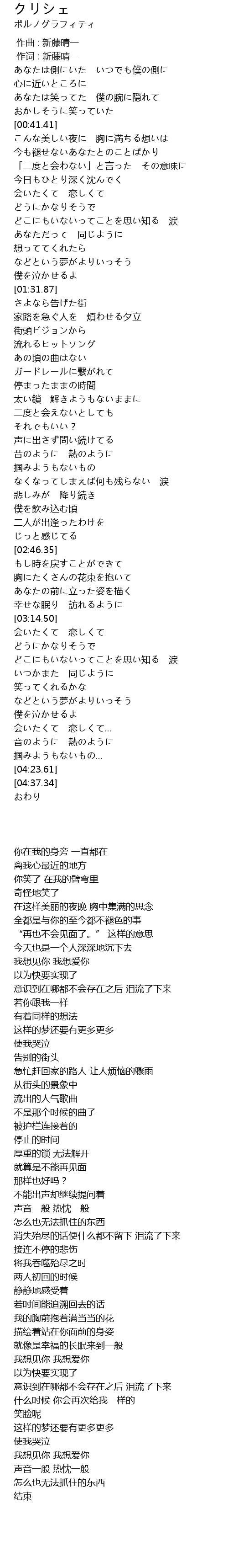 | [00:48.67] | 今も褪せないあなたとのことばかり |
