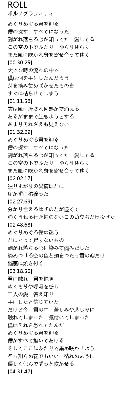 | [04:01.86] | めぐりめぐる君を辿る |