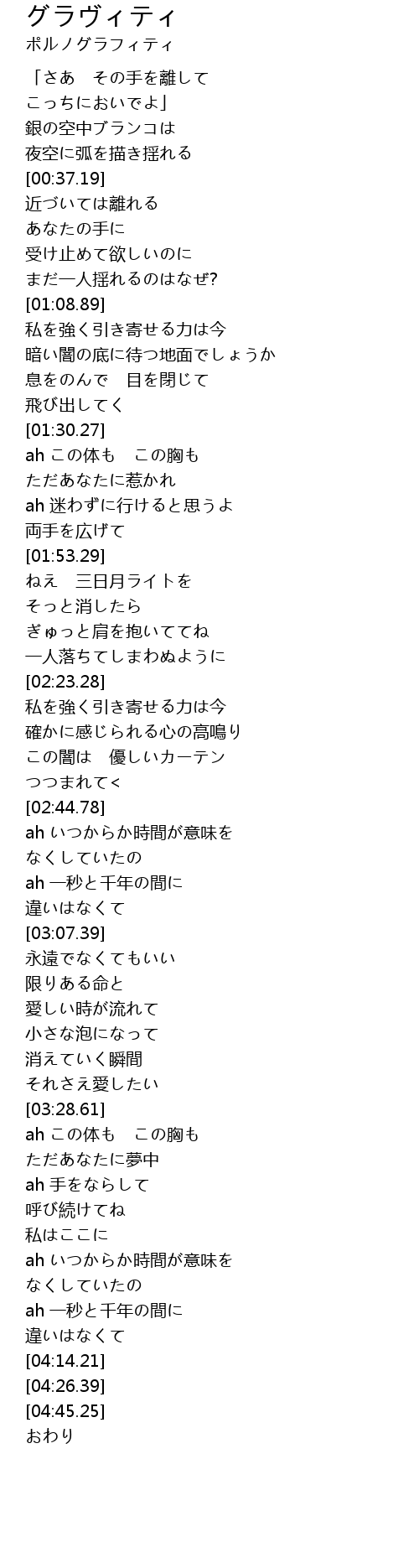 | [01:03.96] | まだ一人揺れるのはなぜ? |