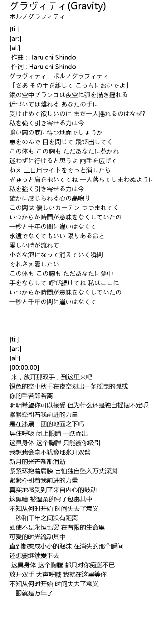 | [00:00.00] | グラヴィティーポルノグラフィティ |