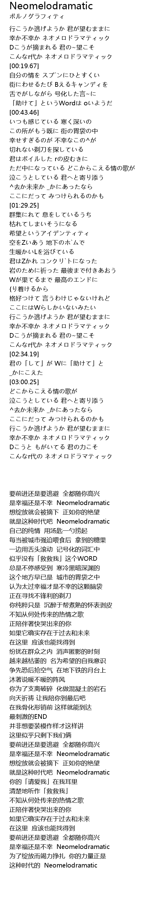| [00:15.51] | 就是这种时代吧 Neomelodramatic |