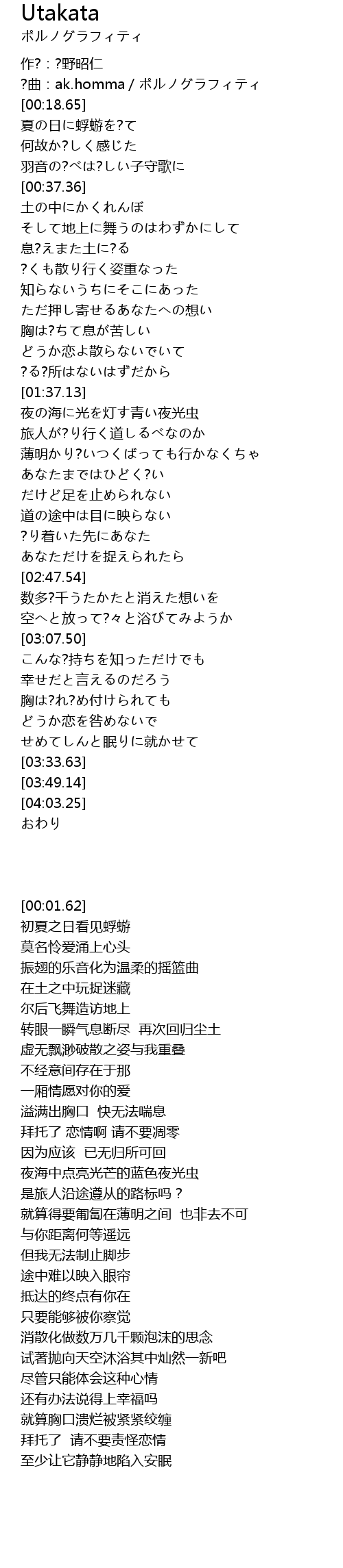 | [00:20.65] | 夏の日に蜉蝣を?て |