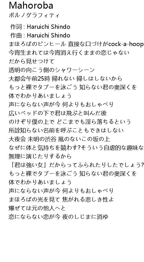 | [00:43.324] | だから見せつけて 透明の向こう側のシャワーシーン |