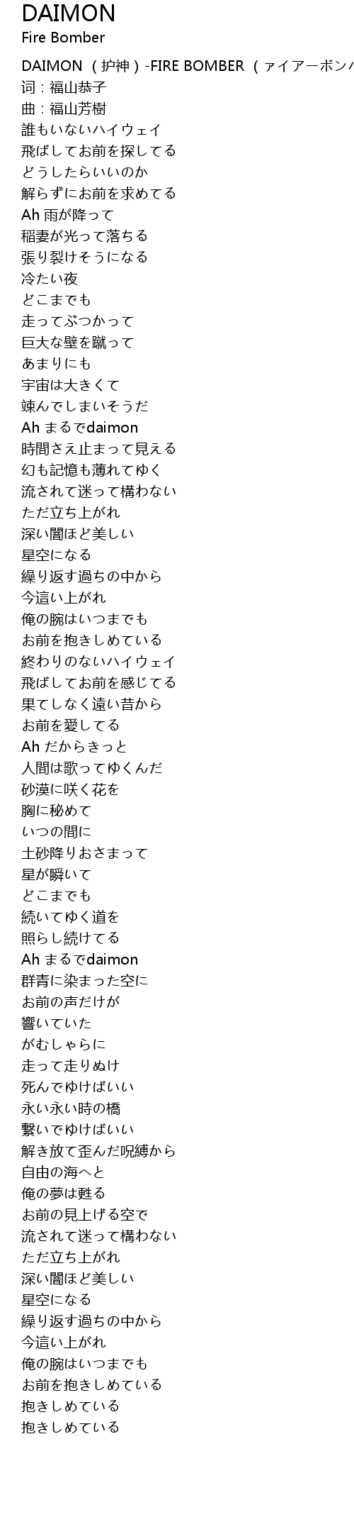 | [00:00.00] | DAIMON hù shén FIRE BOMBER |