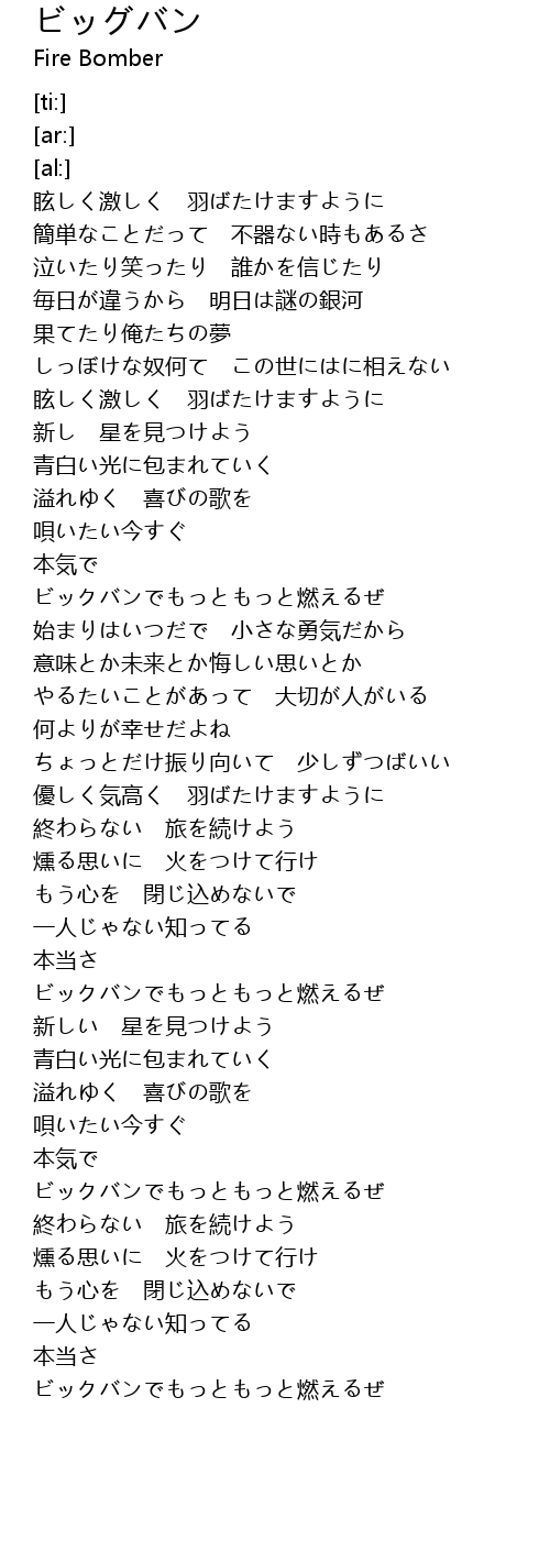 | [03:33.73] | ビックバンでもっともっと燃えるぜ |