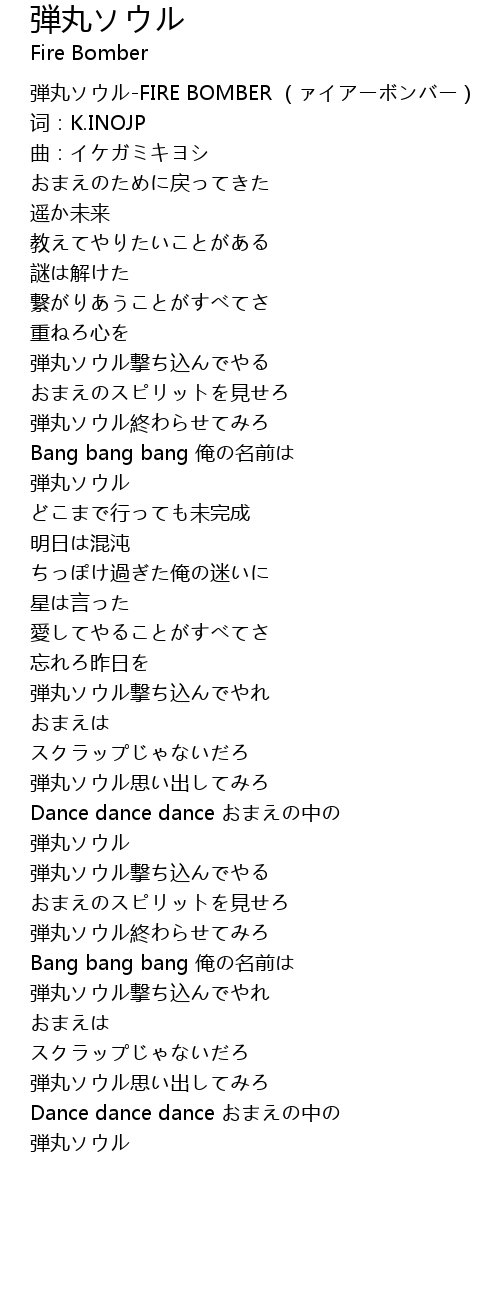 | [00:00.00] | 弾丸ソウル-FIRE BOMBER (ァイアーボンバー) |