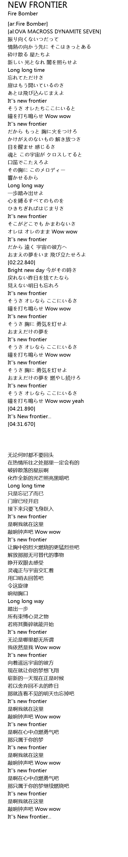 | 歌曲 | NEW FRONTIER |