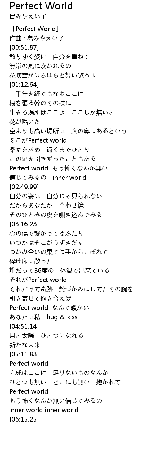 | [00:11.87] | 「Perfect World」 |