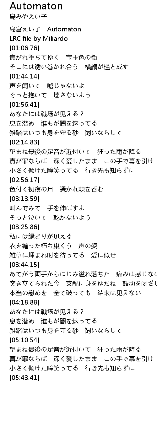 | [00:37.38] | 岛宫えい子ーAutomaton |