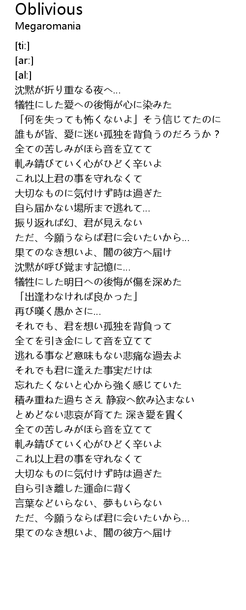 | 歌曲 | Oblivious |