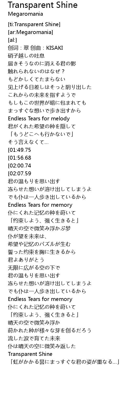 | [05:01.71] | Transparent Shine |
