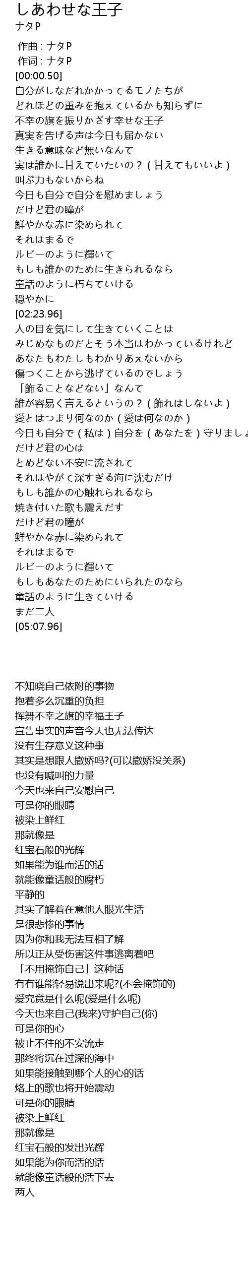 | [00:47.90] | 不幸の旗を振りかざす幸せな王子 |