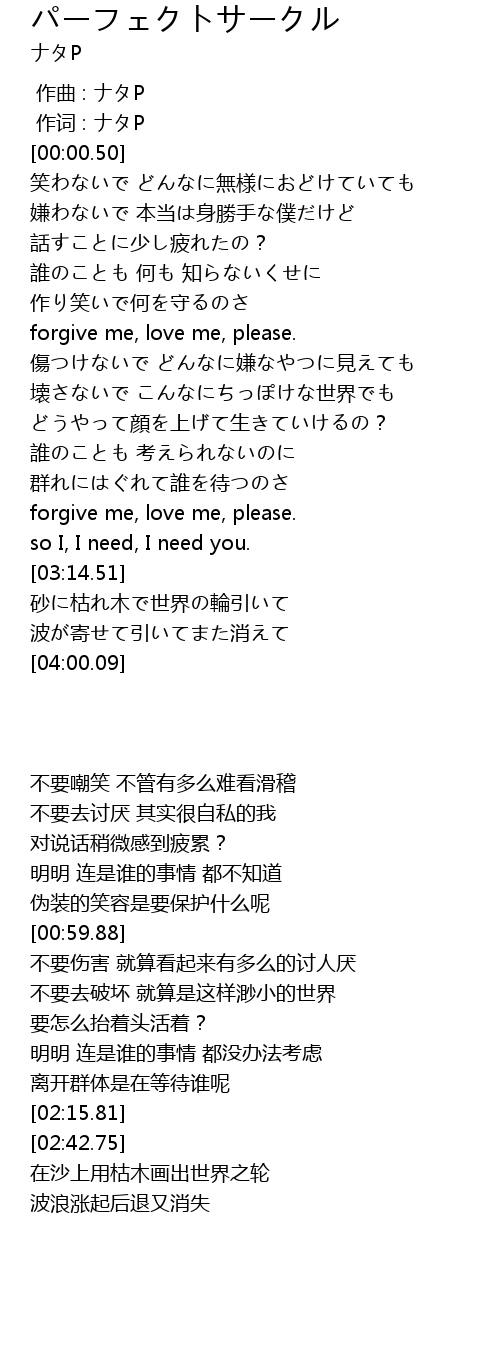 | [00:15.07] | 笑わないで どんなに無様におどけていても |