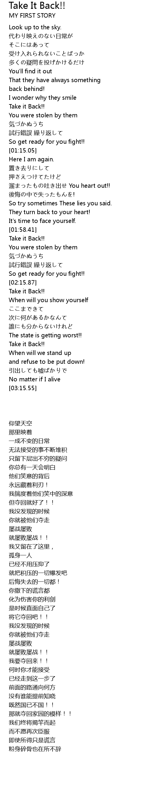 | [01:34.33] | 溜まったもの吐き出せ You heart out!! |