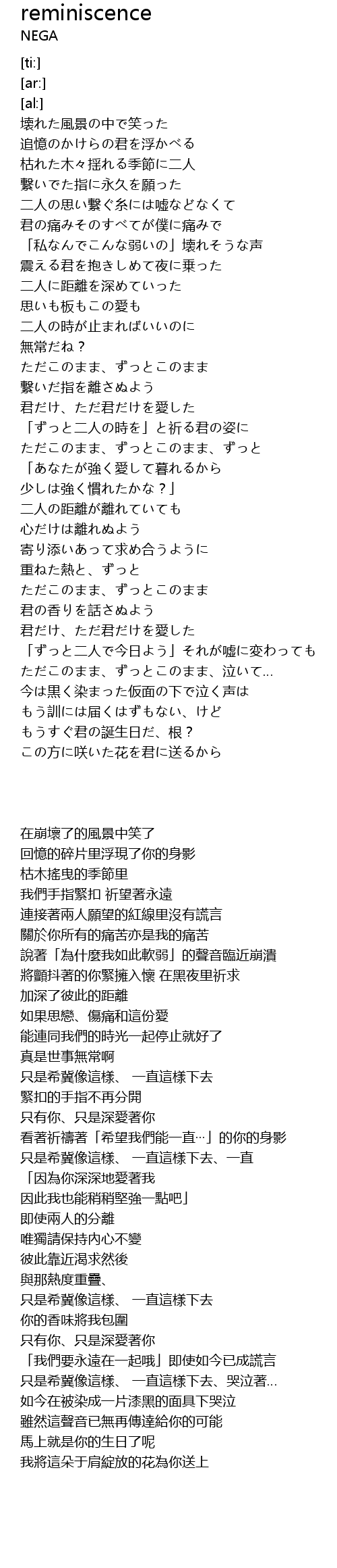 | 歌曲 | reminiscence |