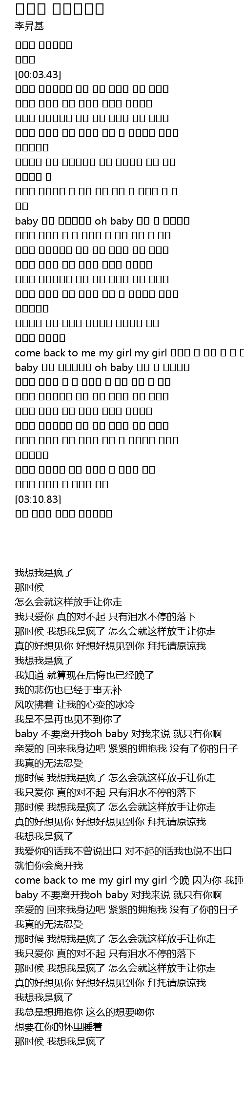 | [03:20.65] | 그땐 정말로 정신이 나갔었나봐 |