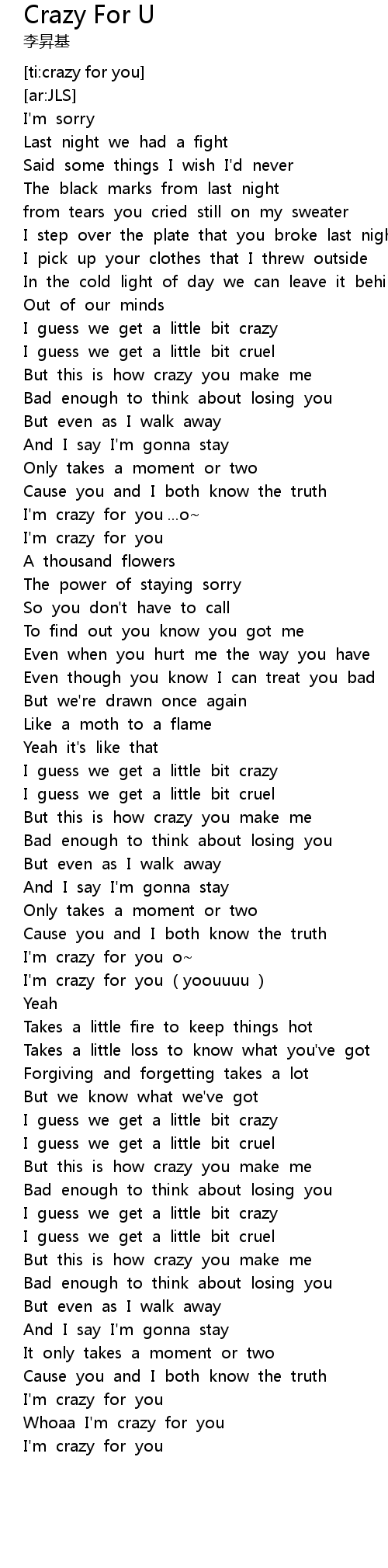 | [03:21.580] | Whoaa I' m crazy for you |