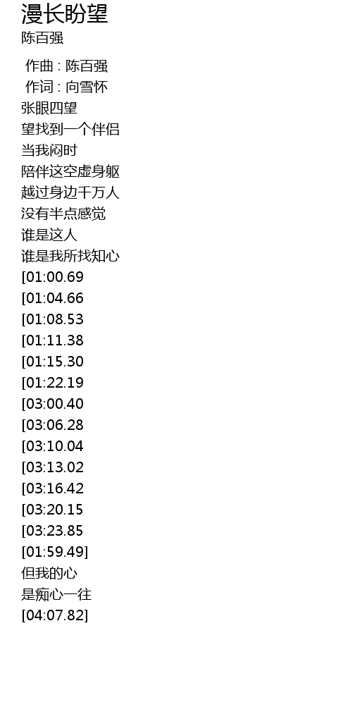 | [03:30.87][03:00.40][01:30.11] | 人仍在日日夜夜盼望 |
