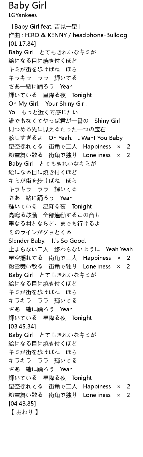 | [03:59.58] | Baby Girl とてもきれいなキミが |
