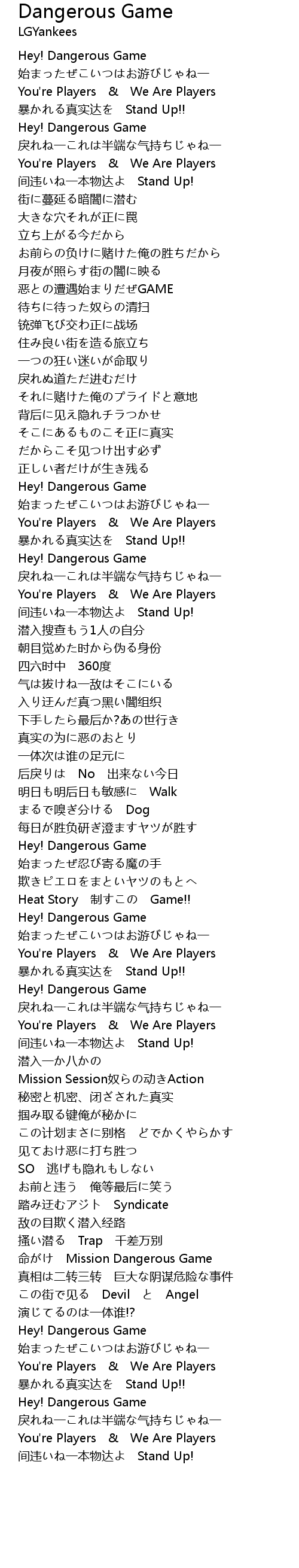| 歌曲 | Dangerous Game |