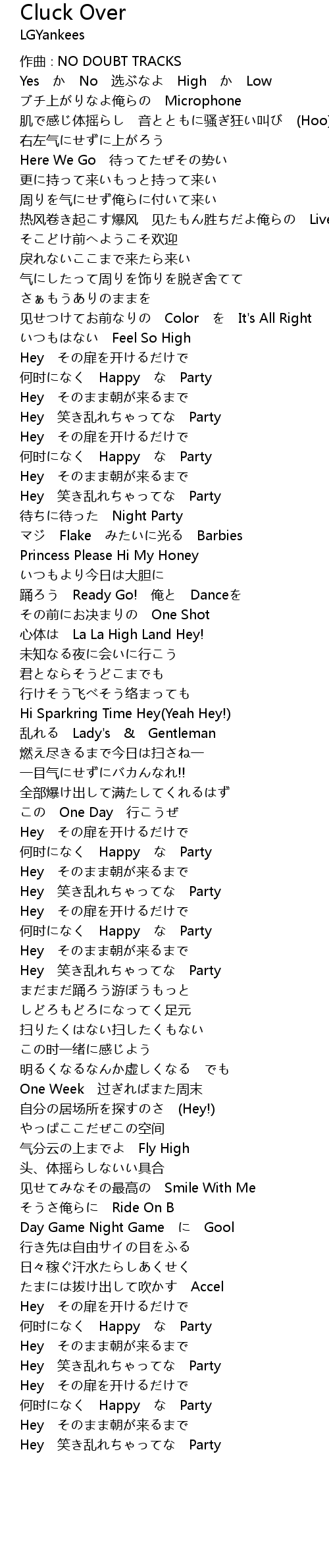 | 歌曲 | Cluck Over |