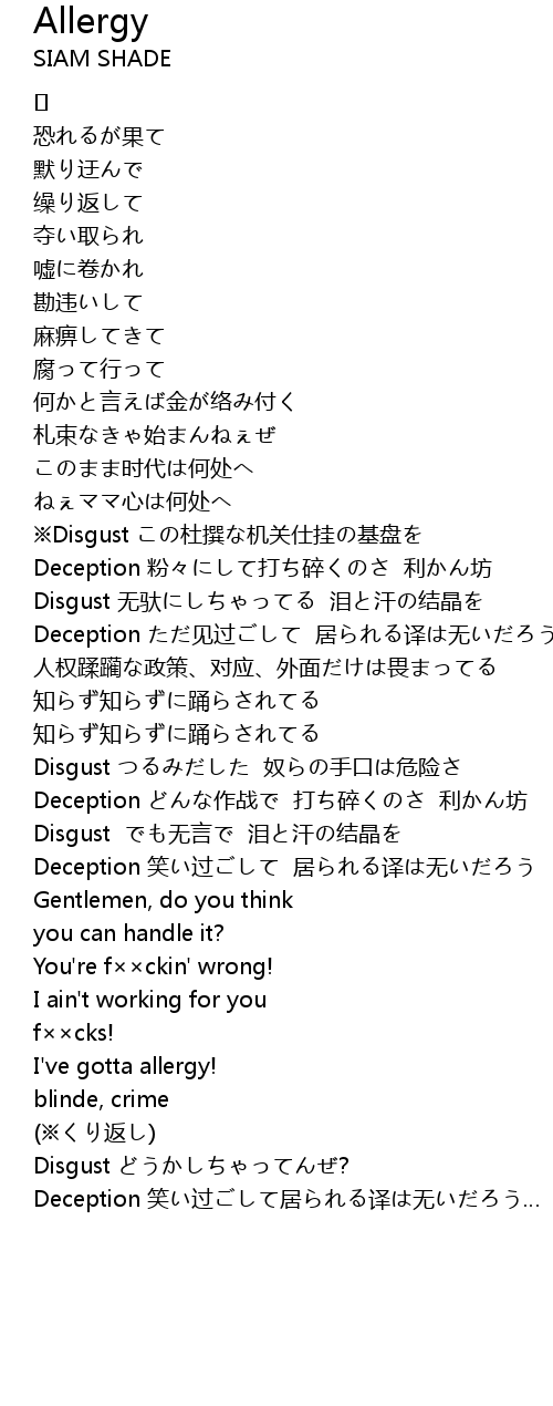 | 歌曲 | Allergy |