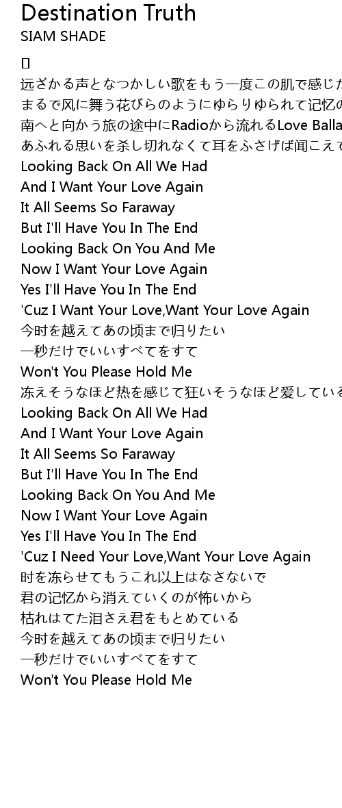 | ' Cuz I Need Your Love, Want Your Love Again | |