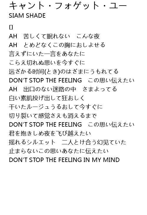 | 歌曲 | キャント・フォゲット・ユー |