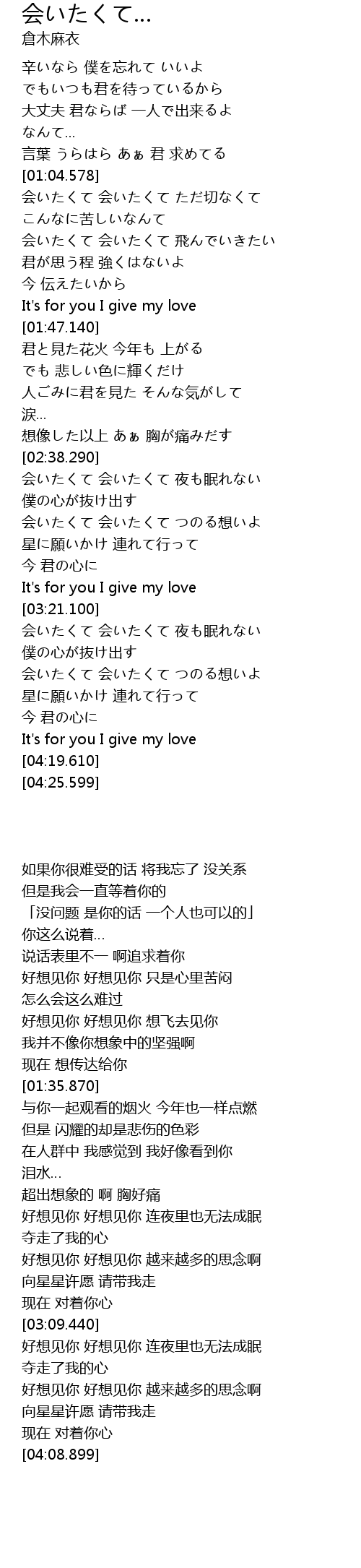 | [03:37.290] | 会いたくて 会いたくて 夜も眠れない |