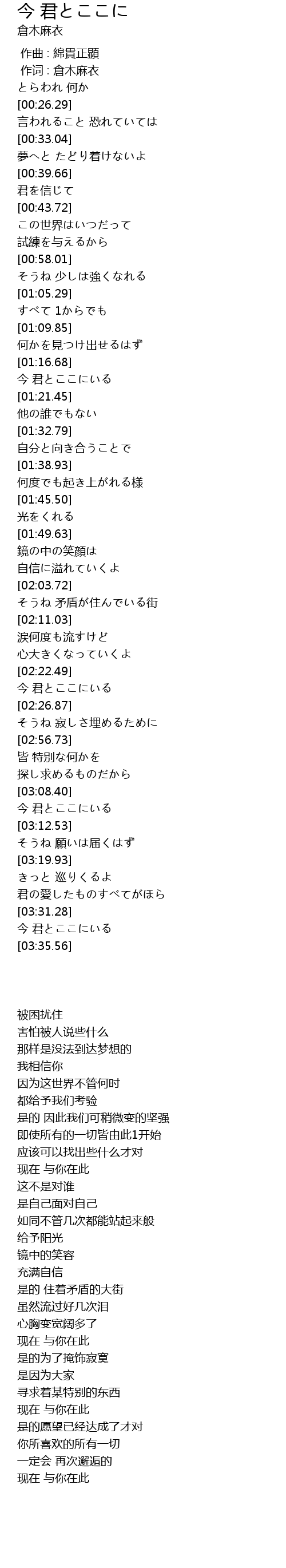 | [00:01.00] | 作词 : 倉木麻衣 |