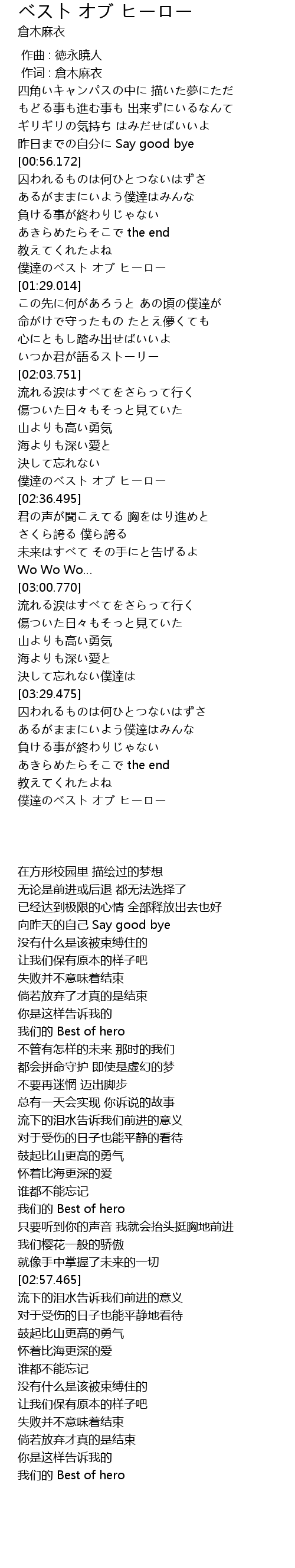 | [02:29.798] | 我们的 Best of hero |