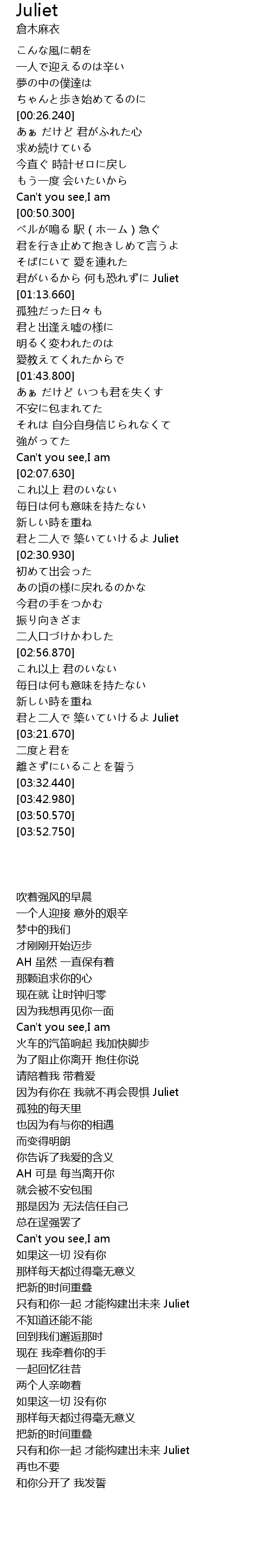 君がいるから 何も恐れずに Juliet |
