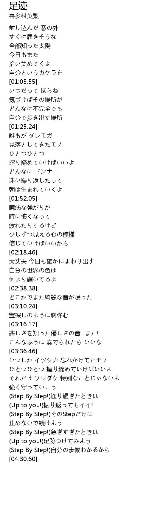 | [04:22.33] | (Step By Step!)自分の歩幅わかるから |