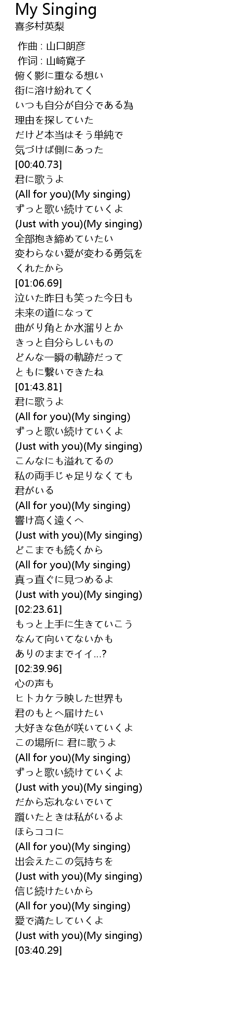 | [02:18.36] | 真っ直ぐに見つめるよ |