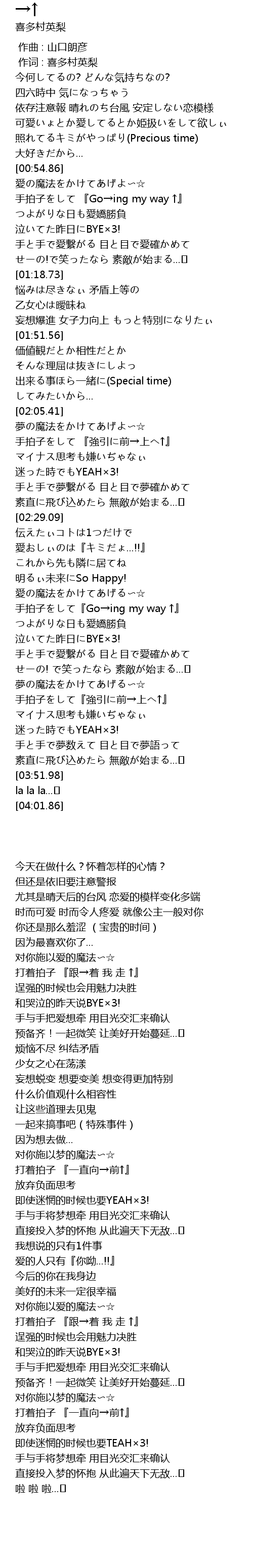 | [03:08.87] | 手拍子をして『Go→ing my way ↑』 |