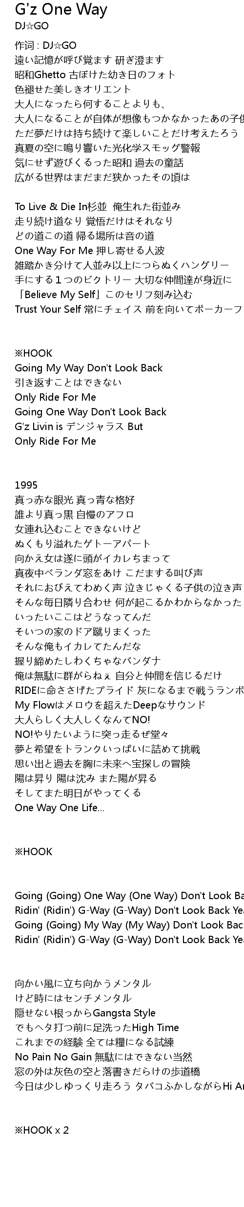 | 歌曲 | G'z One Way |