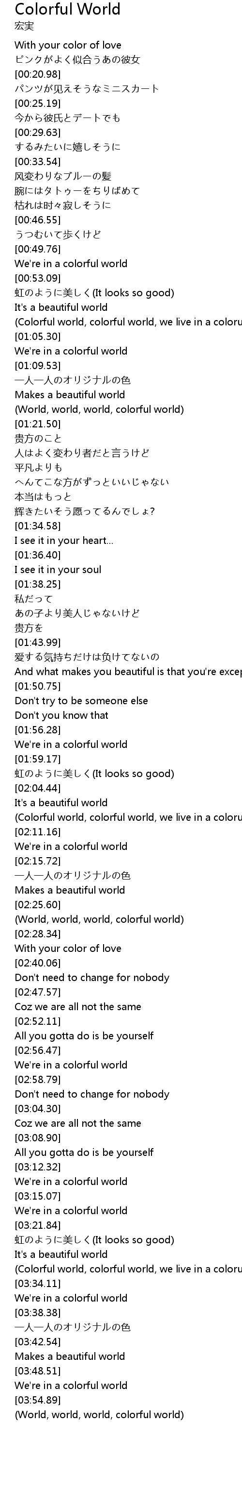 | [01:03.47] | Colorful world, colorful world, we live in a coloruful world |