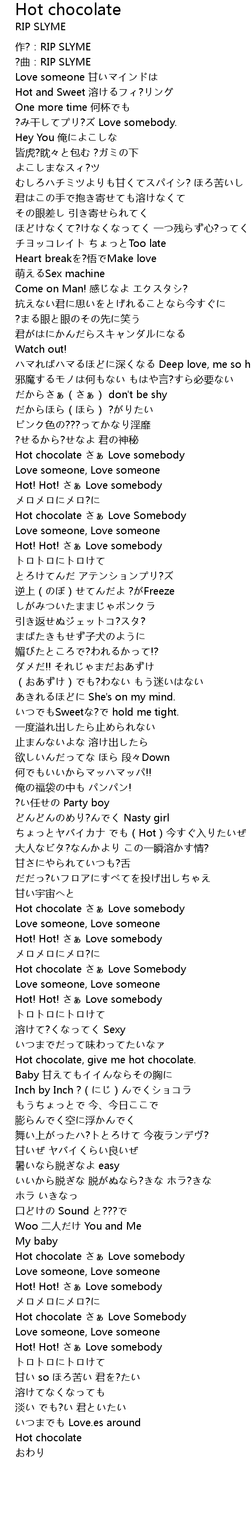 | [01:32.02] | Hot chocolate さぁ Love Somebody |
