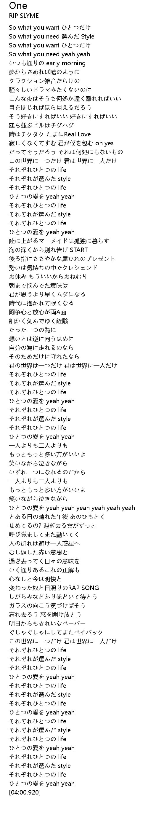| [03:55.760] | それぞれひとつの life |