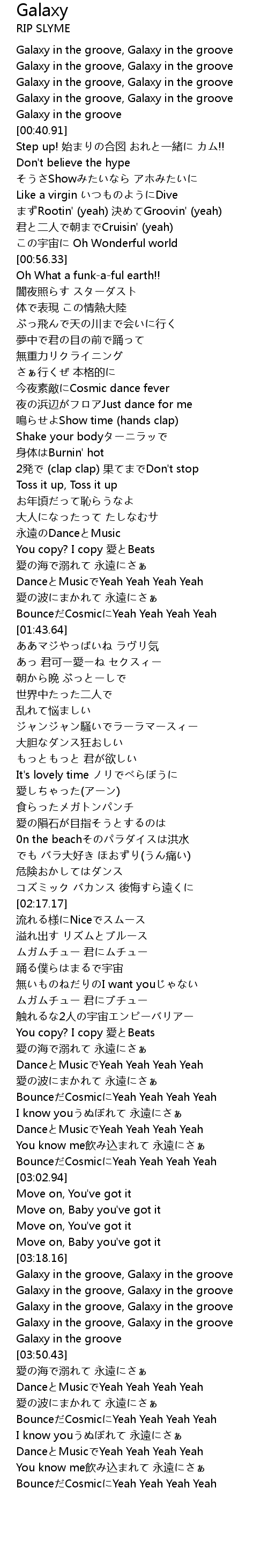| [03:33.64] | Galaxy in the groove, Galaxy in the groove |