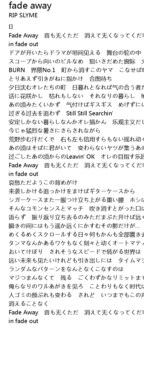 | Fade Away 音も无くただ 消えて无くなってくだけまた fade in fade out |