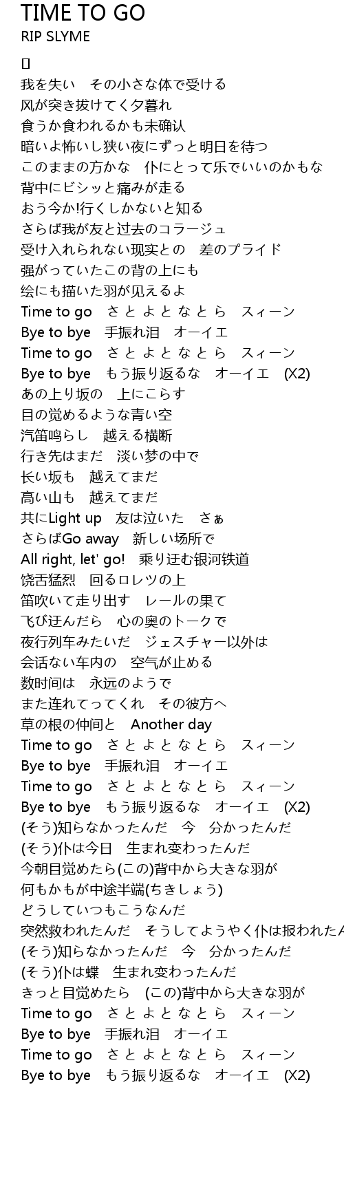 | Bye to bye もう振り返るな オーイエ (X2) |